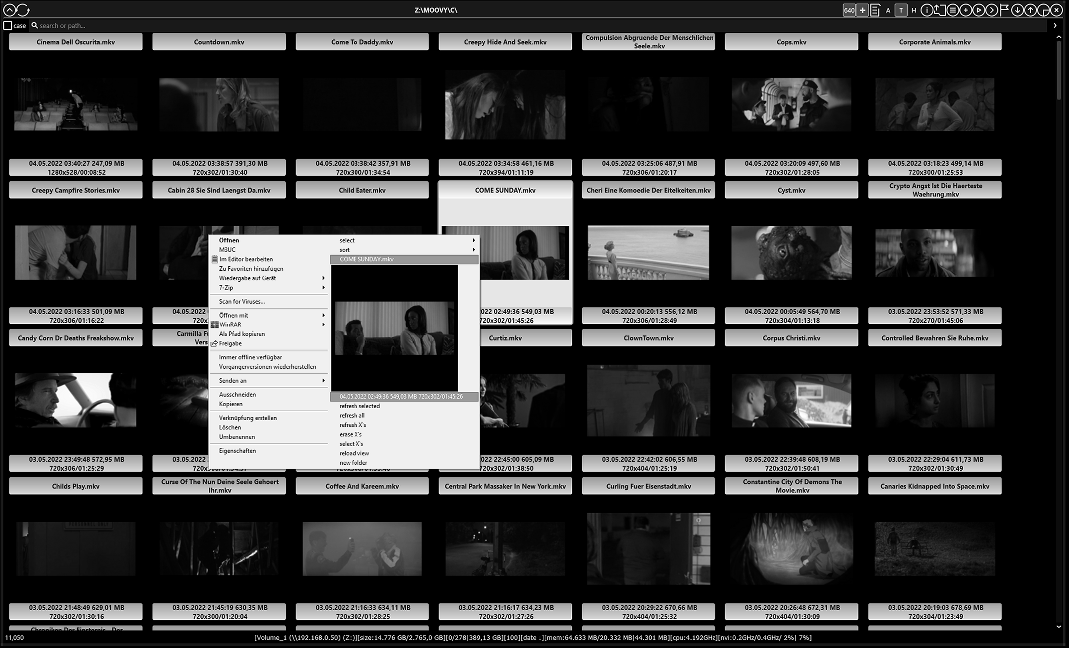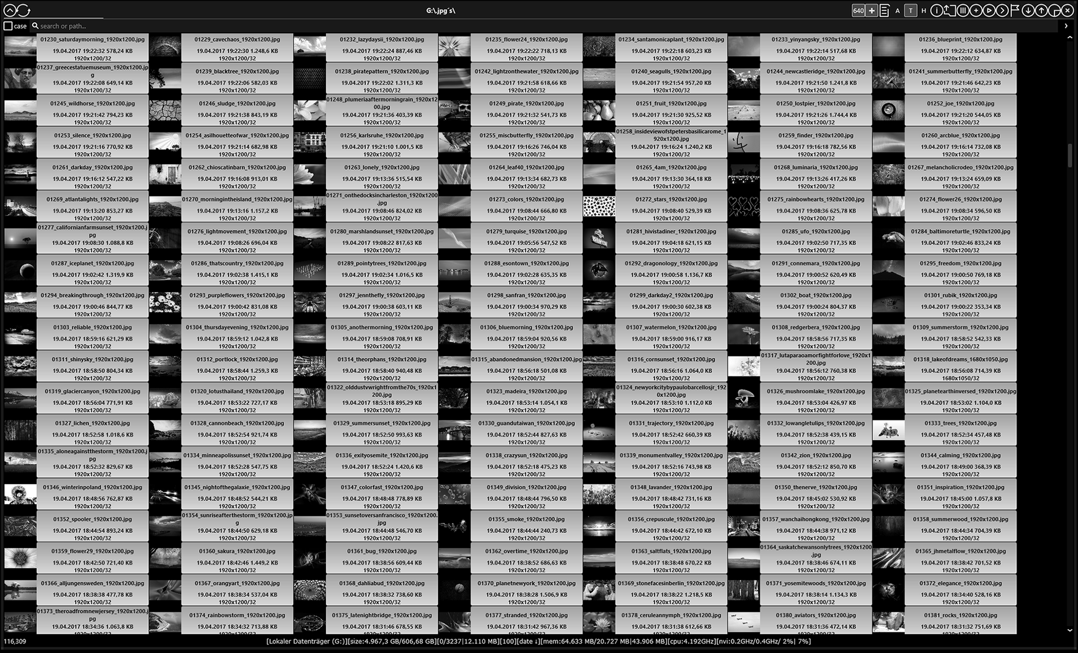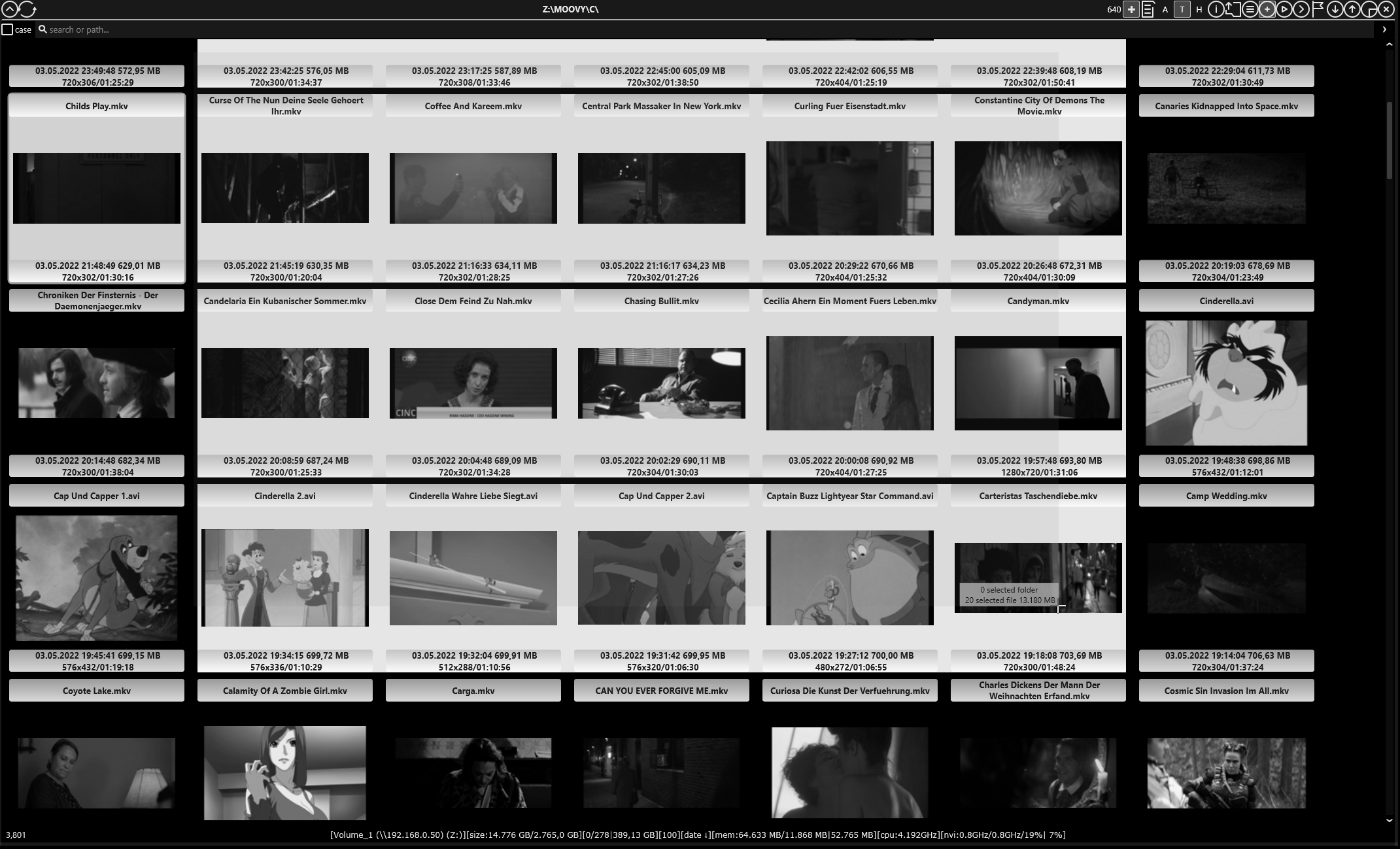 • databased image and video thumb generating – basic informations displayed fast