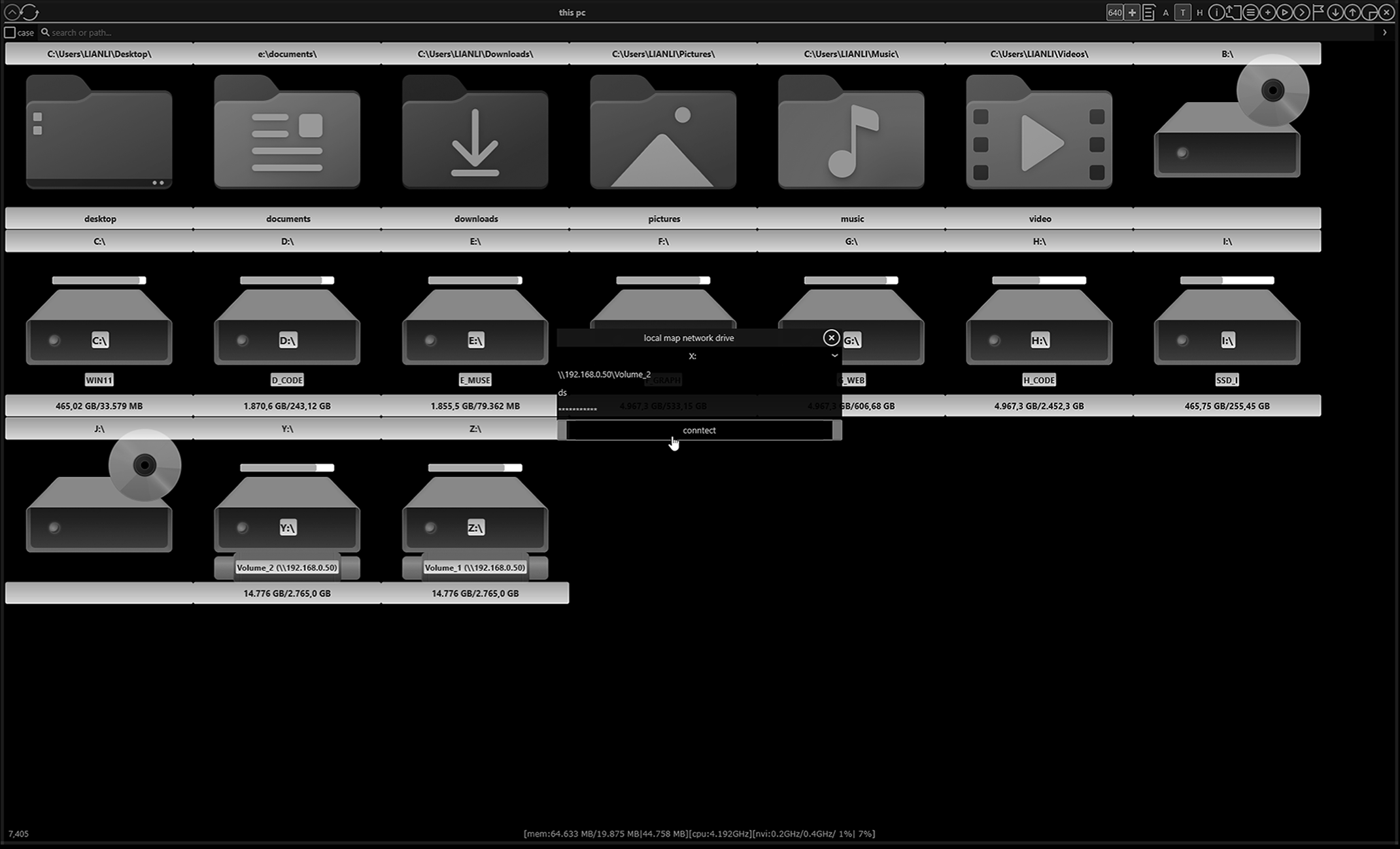• add your network drives, create new files and folder on your prevered drives