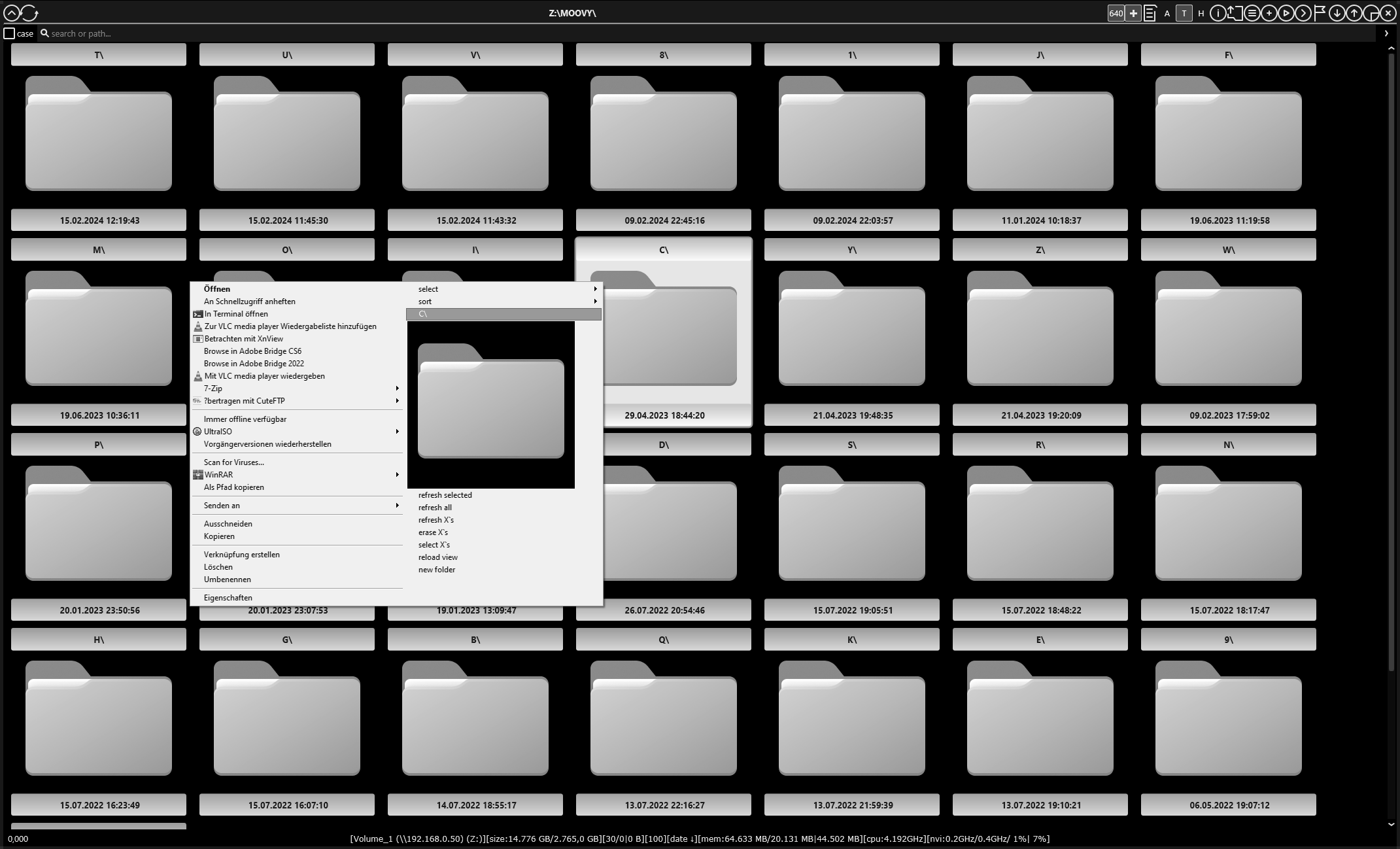 • explorer like interface with extended contextmenu for disk, folder and file handling